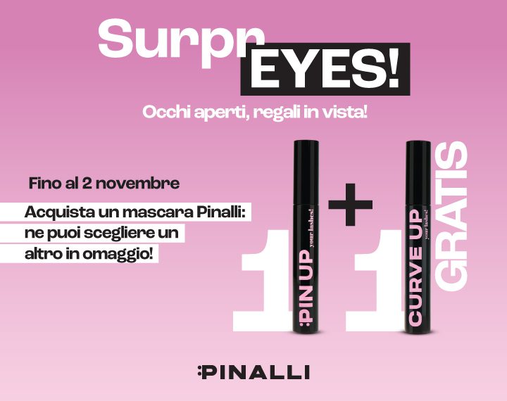 Surpr-eyes.. Occhi aperti, regali in vista! Se acquisti un mascara Pinalli, ne puoi scegliere un altro in omaggio! Lo Staff di Pinalli non vede l’ora di accoglierti.
